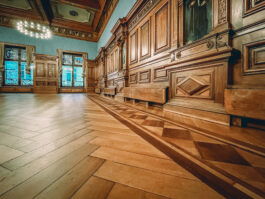 In Zusammenarbeit mit den Villa Nova Architekten AG und der Stücker AG durfen wir im Januar 2021 das historische Parkett im grossen Zunftsaal der Schlüssel Zunft in Basel restauriert. Nach dem sorgfältigen Entfernen der alten Lackschicht, wurden die Nussbaumintarsien im äusseren Randfries als Kontrast zum restlichen Eichenparkett, farblich wieder abgegrenzt. Nach dem finalen Ölen, hat der Boden des Zunftsaals sein ursprüngliches Aussehen von 1883 zurückerhalten.